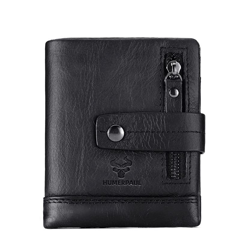 Vintage Crazy Horse leather clutch wallet with zipper security and spacious compartments for organized everyday carry.