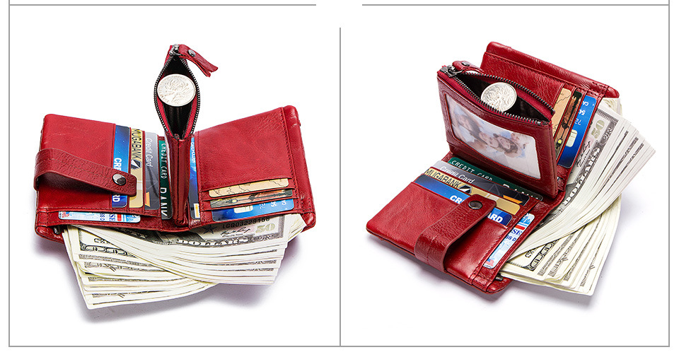 Dedicated compartments for cards, cash, coins, and small essentials.
