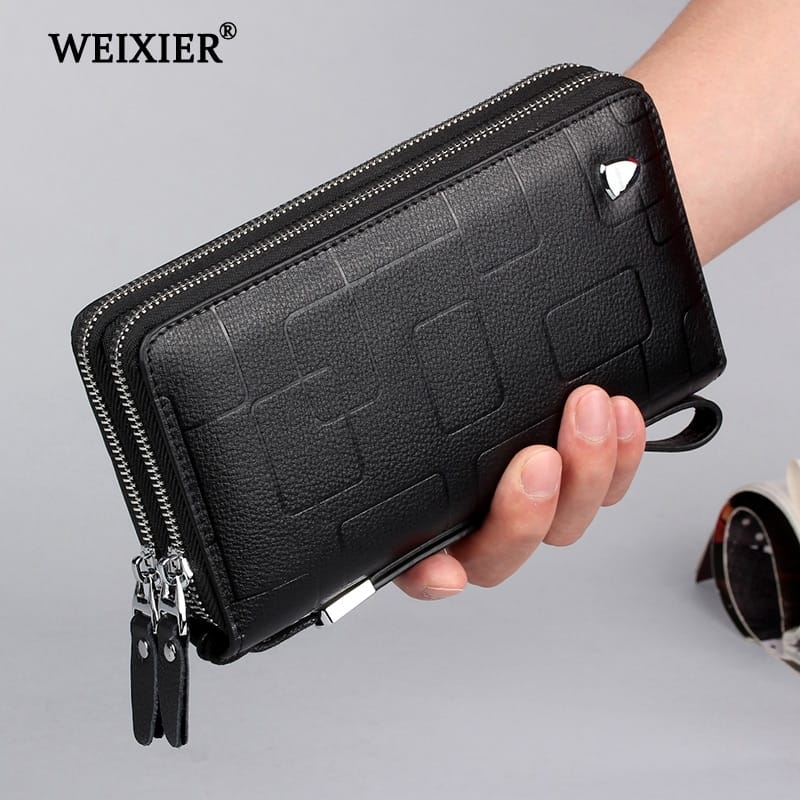 Spacious double-zip clutch wallet designed to organize your phone, cards, cash, and daily essentials in one secure place.
